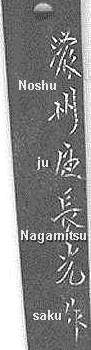 Noshu Kawasaki Nagamitsu (no relation to Ichihara Nagamitsu), Nobumitsu, Kanemitsu and Hiromitsu are all thought to be separate swordsmiths. Does this mean that these smiths worked in the same shop? Obviously they were working in close relationship to each other and employed the same signature carver. The wide spread use of meikirishi mei carvers makes the determination of exactly which style of signature was in fact carved by the swordsmith personally a most difficult undertaking. A large number of oshigata by a wide range of swordsmiths must be carefully studied to make such a determination. In many cases I suspect this will never be determined with great certainty.