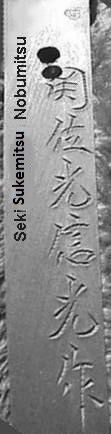 Since ancient times the signatures (mei) on the tangs (nakago) of Japanese swords have occasionally been carved by individuals other than the swordsmiths themselves. In some cases one swordsmith would carve the mei of another working with him. Sometimes a student would carve the mei of a sword made by the master swordsmith. At other times the master swordsmith would carve his name on an exceptional blade made by one of his students. These types of signatures are referred to as "dai mei" and "dai saku mei". During the Showa era (WW II period) it was a wide spread practice for a group of swordsmiths to have their mei carved by a single individual. Sometimes this was done by one of the swordsmiths in the group; other times it was a separate individual. When one individual carves the mei of several swordsmiths, such carved signatures are termed "meikirishi mei". This practice was particularly wide spread in the Seki area (Mino/Noshu region). Seki was the principle region for sword production during the Showa era. Below are several oshigata demonstrating this practice.